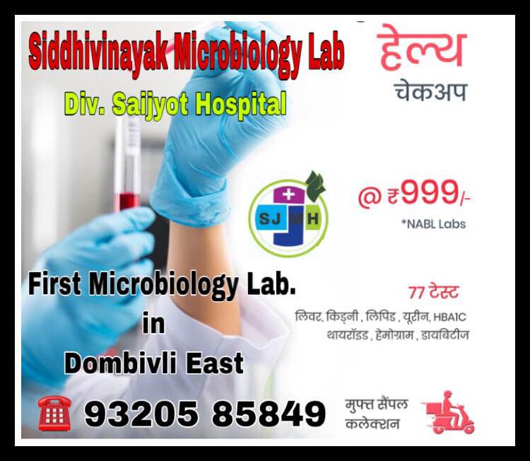 Siddhivinayak Microbiology Div. of Saijyot Hospital is first Microbiology Lab in Dombivli East..